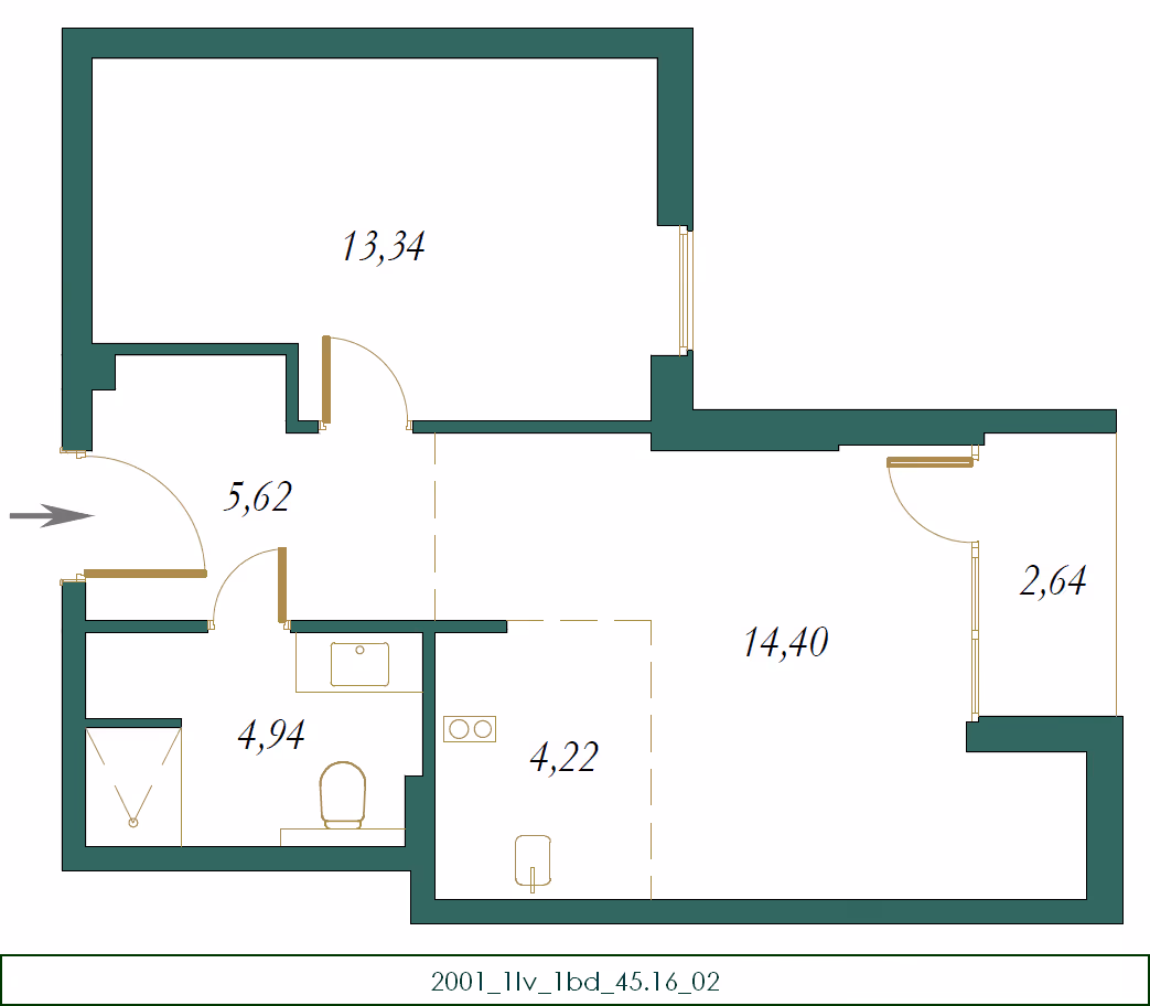 Structure of the apartment: hallway, living room with kitchen, dining table, a bedoom, a bathroom and terrace. The apartment will be delivered with finished tiles, finished floors, equipped bathroom and equipped air conditioning.