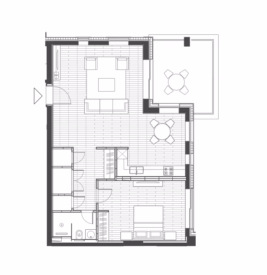 Structure of the apartment: hallway, living room with kitchen and dining table, a bedroom, a bathroom and a terrace. The apartment is fully furnished and ready to move in. Maintenance services are available for this apartment. Also, usage of pools, beaches and sports fields within complex is available.