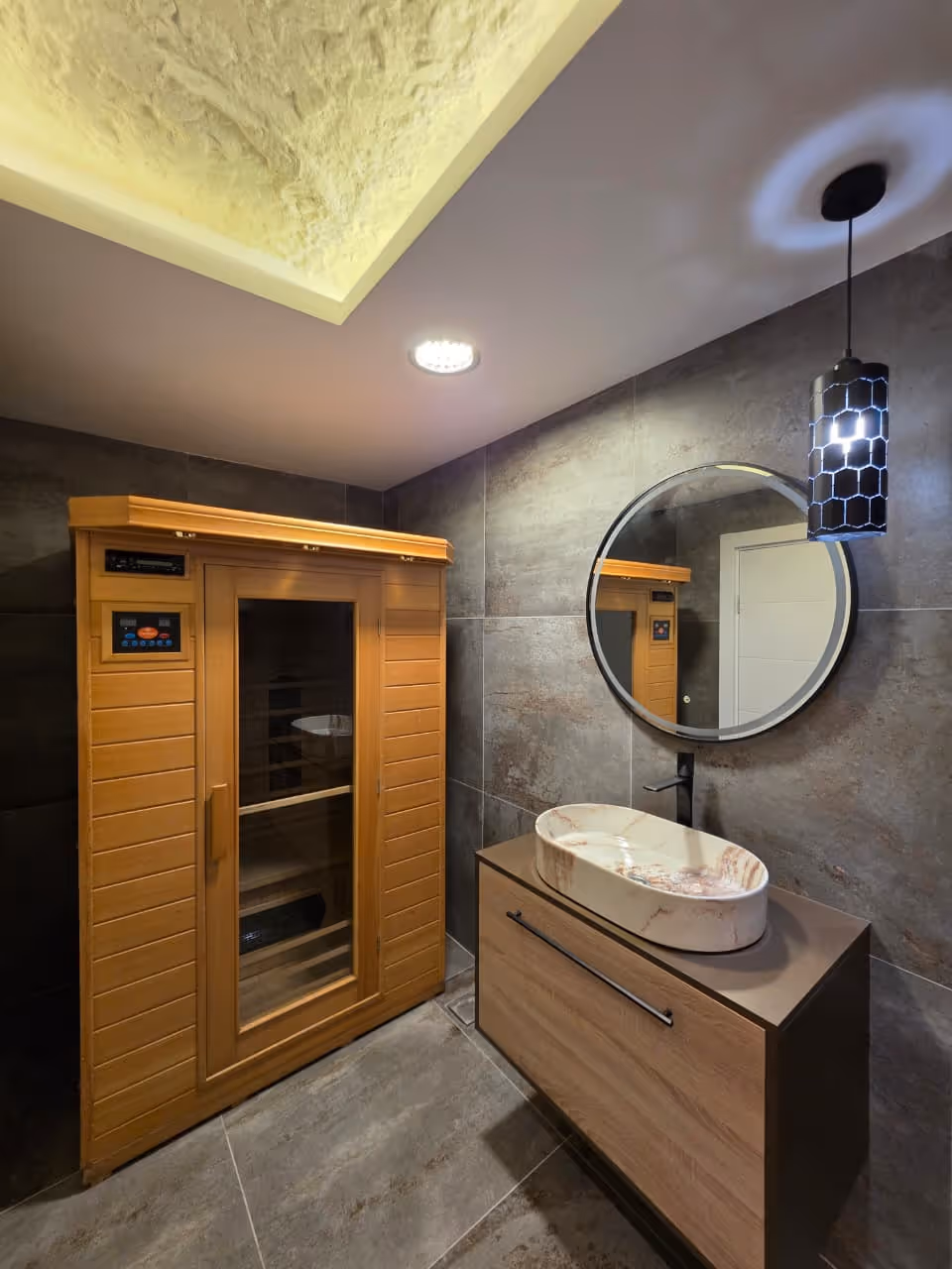 Ovaj prostran i funkcionalno projektovan stan ima raspored koji obuhvata hodnik, dnevni boravak otvorenog koncepta sa kuhinjom i trpezarijom, tri spavaće sobe, dva kupatila i četiri terase. Privatna sauna pruža dodatni prostor za opuštanje i komfor.