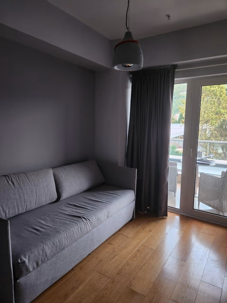 This apartment is located in Budva Center. he sea and the beach are 100m away from the apartment. Tivat airport is 21km away and Podgorica airport is 63km away from the apartment. The beach, many restaurants and grocery shops are in close vicinity to the apartment.