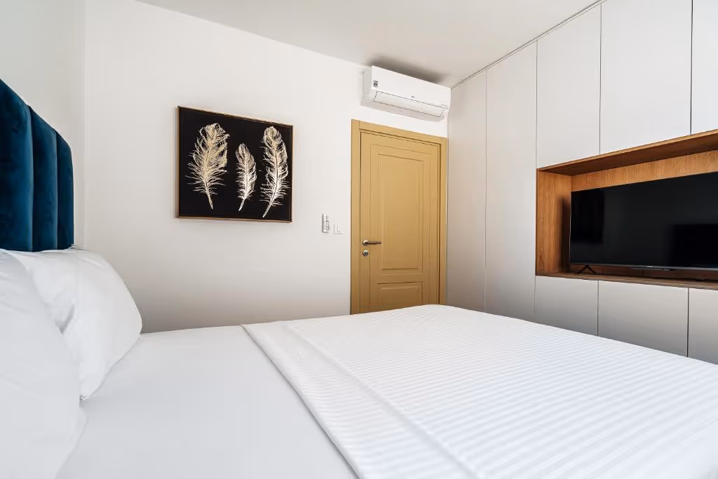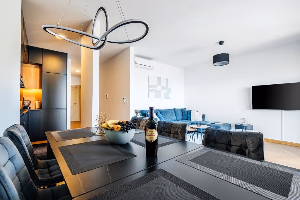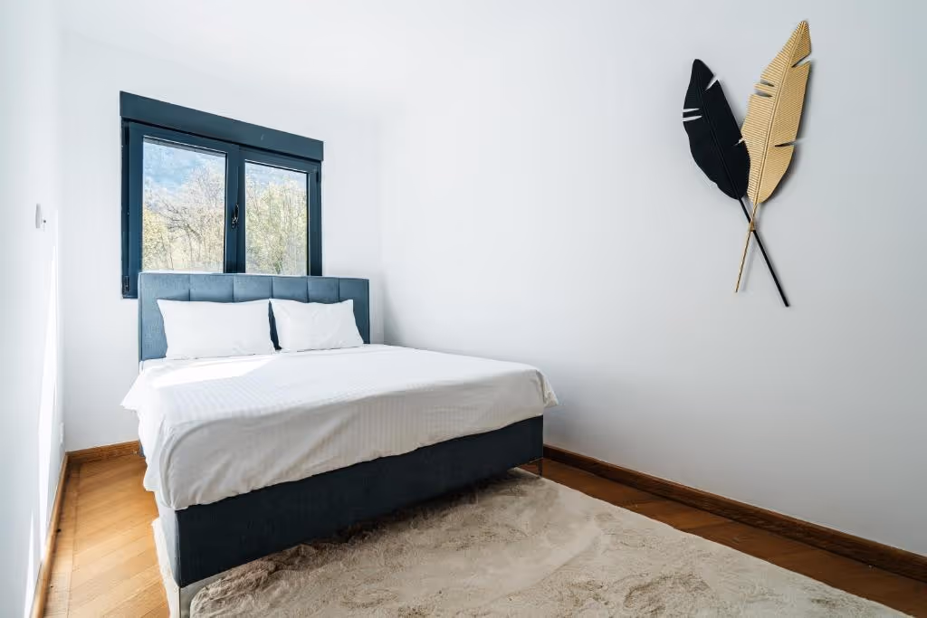 This apartment is located in Sveti Stefan, Budva Municipality, 13km away from the city center. The sea and the beach are 3km away from the apartment. Tivat airport is 30km away and Podgorica airport is 55km away from the apartment. Peace and tranquility are guaranteed since the apartment is in the nature.