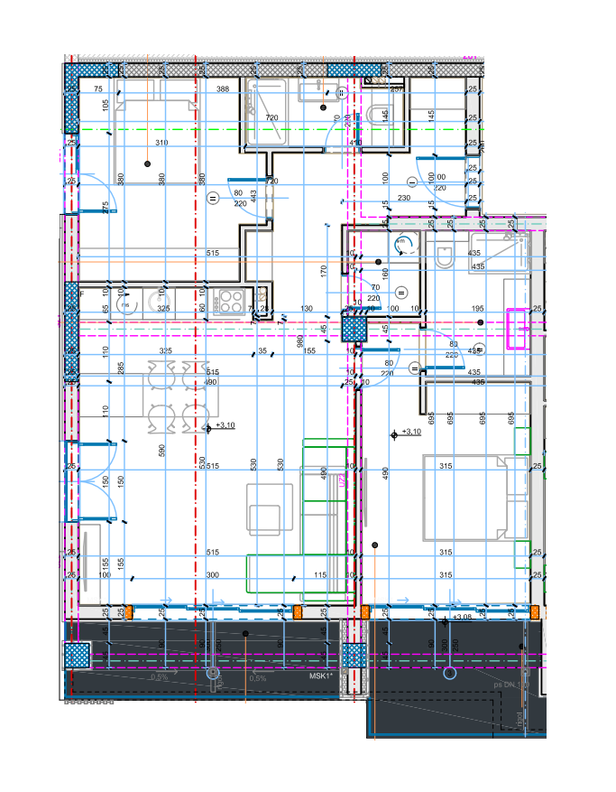 Structure of the apartment: hallway, living room with kitchen and dining table, a storage room, 2 bedrooms, 2 bathrooms and 2 terraces. It has a panoramic sea view and the view of the mountains that surround it. The apartment will, upon its finishing, have equipped bathroom, equipped tiles, equipped kitchen and air conditioning.