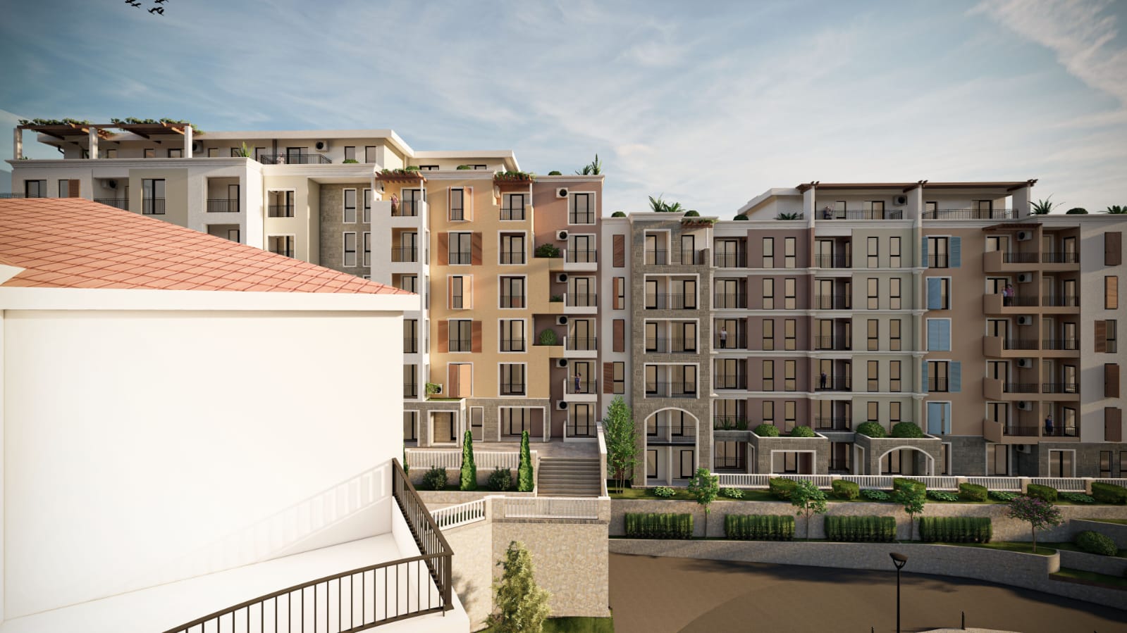 Structure of the apartment: living room with kitchen and dining table, 2 bedrooms, a bathroom and a terrace. The apartment has a view of the sea and the mountains that surround it. Upon finish the apartment will be unfurnished and will be delivered with finished floors, finished tiles, equipped bathroom and equipped air conditioning.
