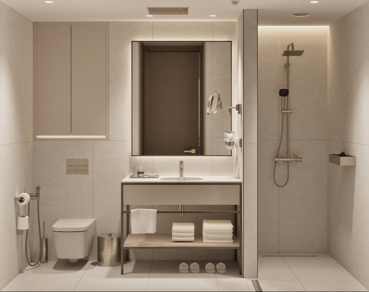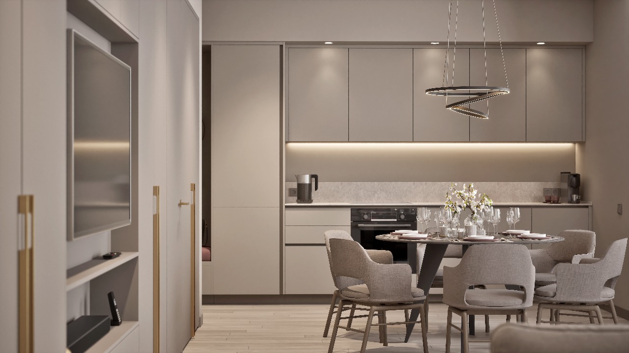 The project has 8 floors, while this apartment is on the 3rd floor. There will be a hotel within the project. It will have many additional amenities: an indoor and outdoor pool, a 2 level casino, a gym, a private beach, wellness and spa and retail spaces (a vibrant selection of restaurants, cafes, bars and boutique shops). There will also be an option of managed rental option of the apartment while the owner is away. Underground garage spots are available to be purchased. The building is connected by an asphalt road to the main road. The project will be finished in December 2026. Maintenance is 6,90€ per square meter a month.