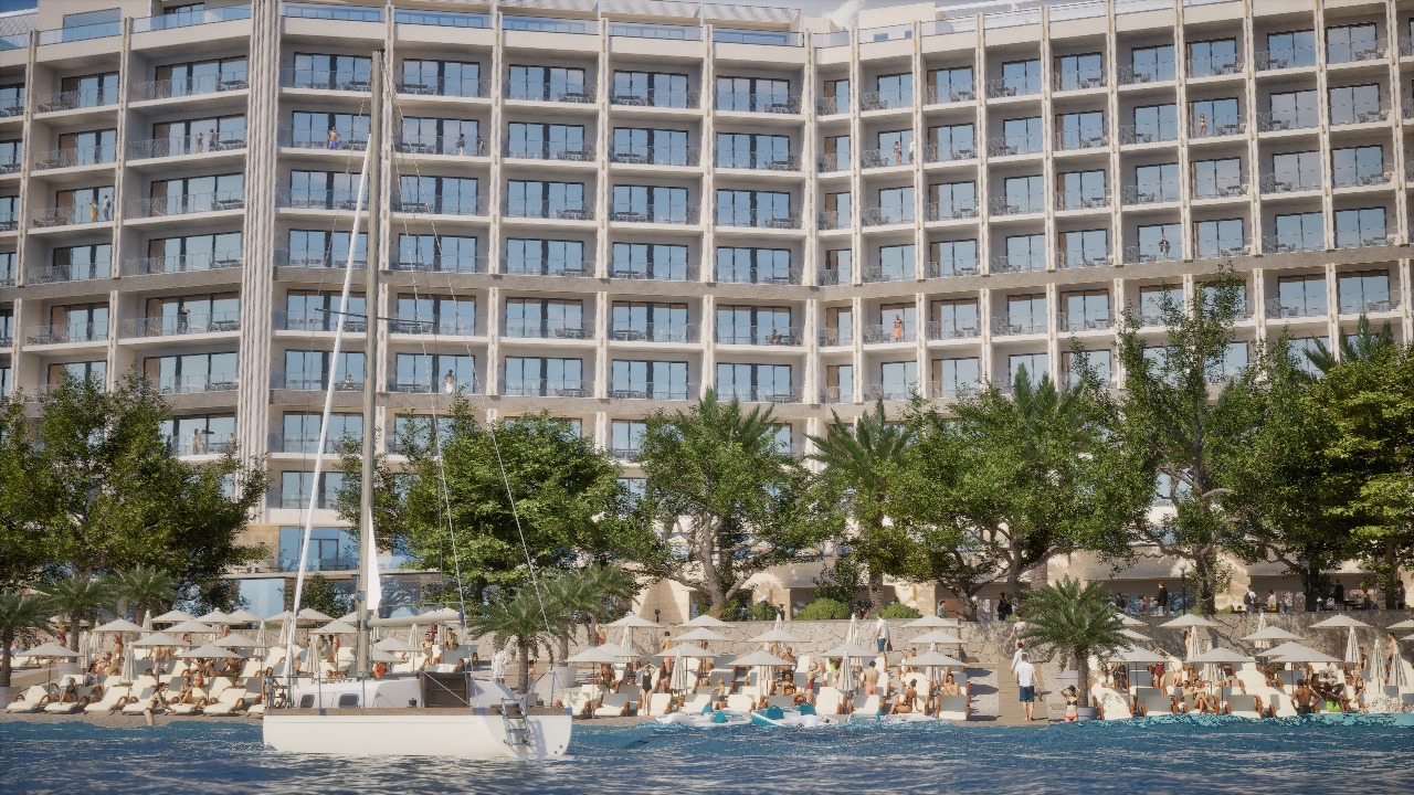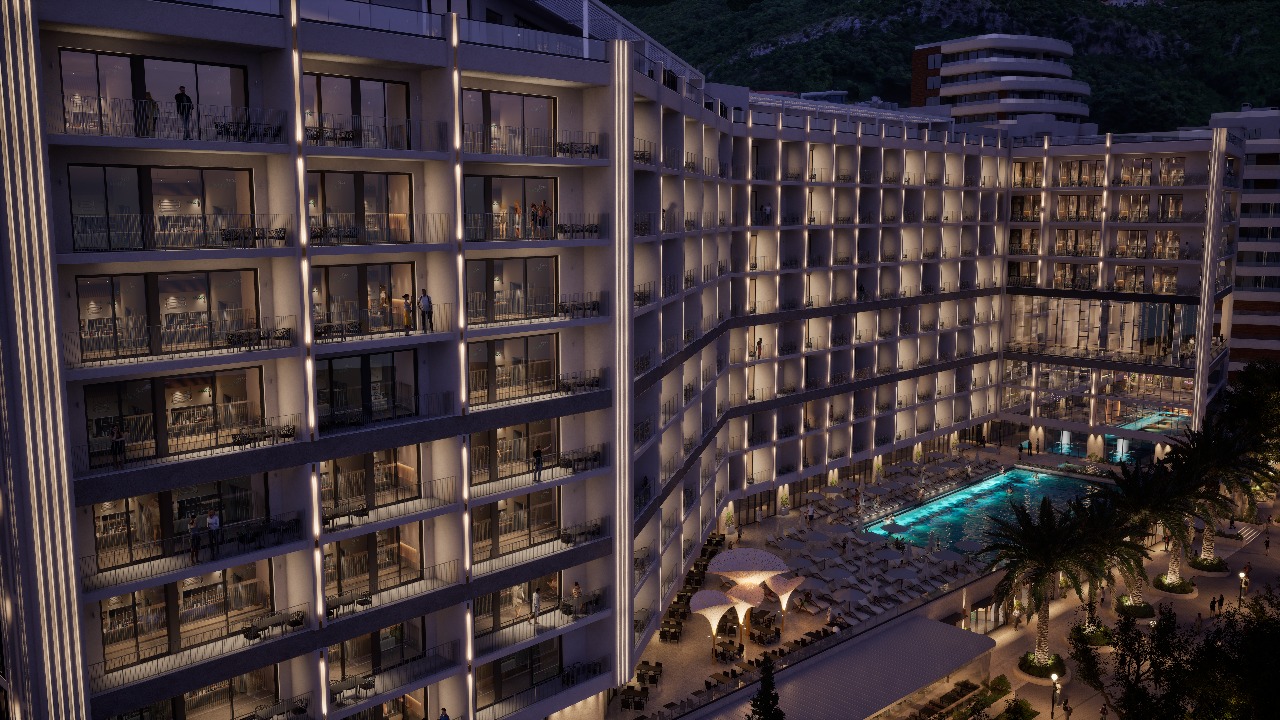 The project has 8 floors, while this apartment is on the 2nd floor. There will be a hotel within the project. It will have many additional amenities: an indoor and outdoor pool, a 2 level casino, a gym, a private beach, wellness and spa and retail spaces (a vibrant selection of restaurants, cafes, bars and boutique shops). There will also be an option of managed rental option of the apartment while the owner is away. Underground garage spots are available to be purchased. The building is connected by an asphalt road to the main road. The project will be finished in December 2026. Maintenance is 6,90€ per square meter a month.