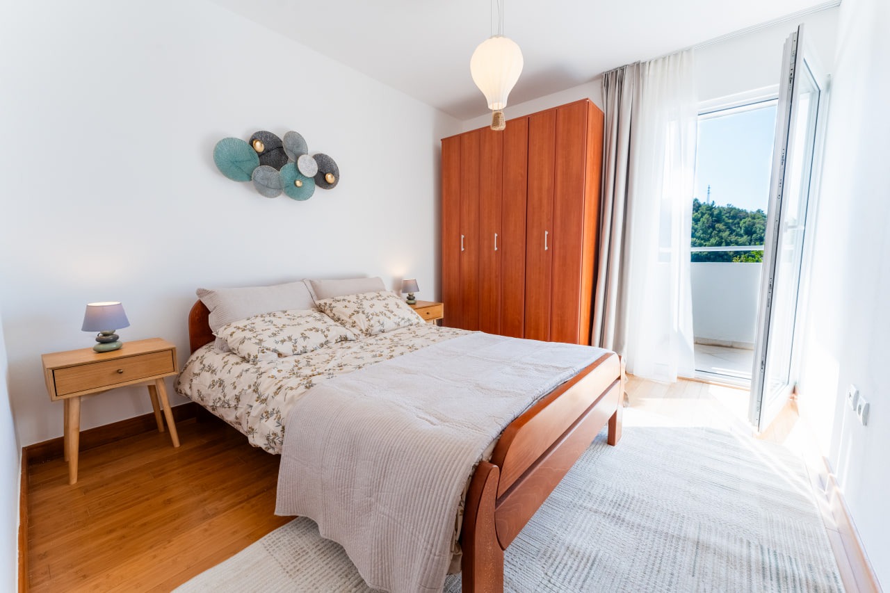 This apartment is located in Budva, 6,5km away from the city center. The sea and the beach are 10 minutes away from the apartment. Tivat airport is 27km away and Podgorica airport is 58km away from the apartment. Various restaurants and grocery shops are in close vicinity to the apartment.