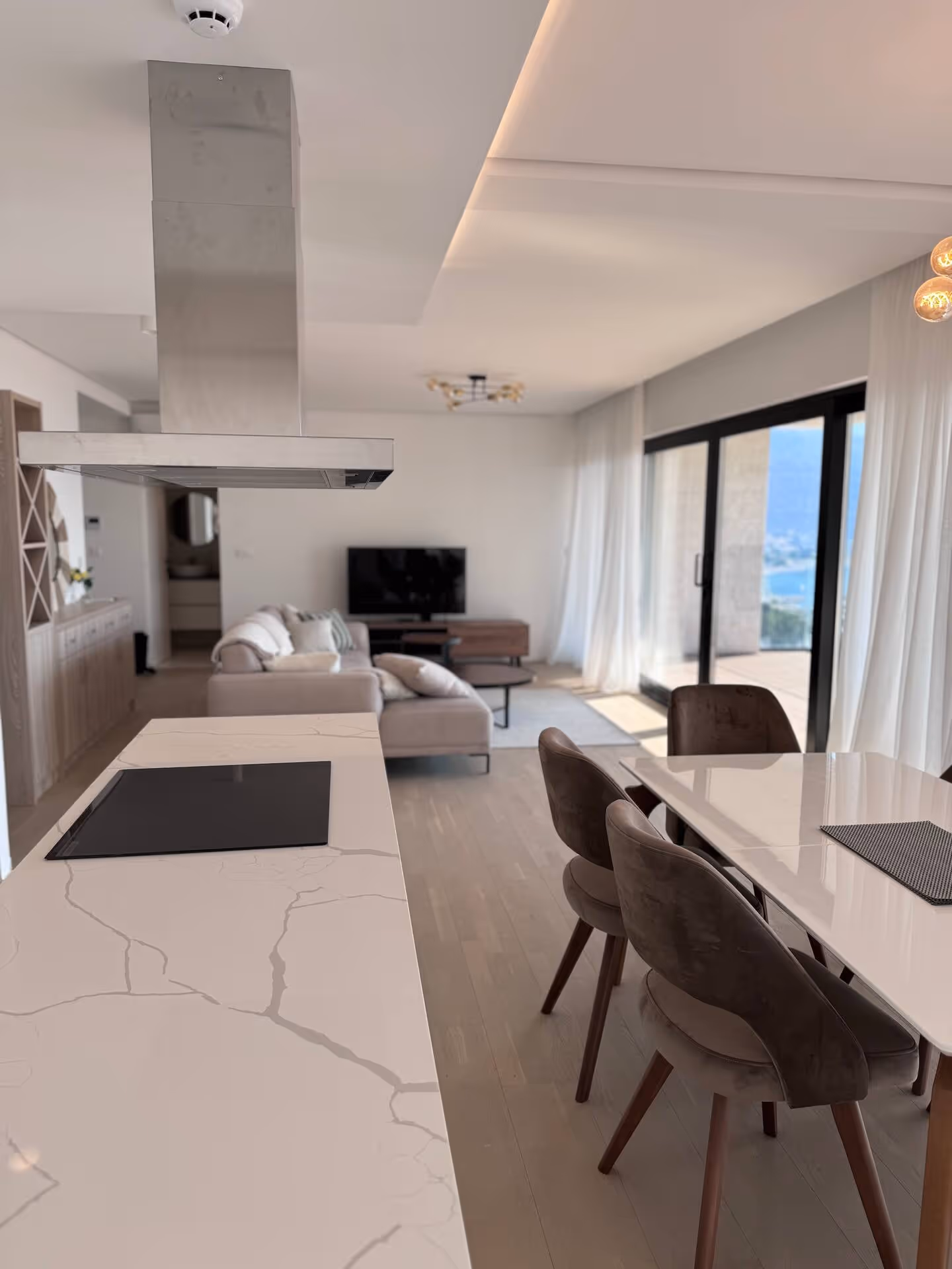 U apartmanu mogu udobno da spavaju do 4 osobe, nudeći spoj stila, udobnosti i prelepog pogleda na slikoviti pejzaž Budve.