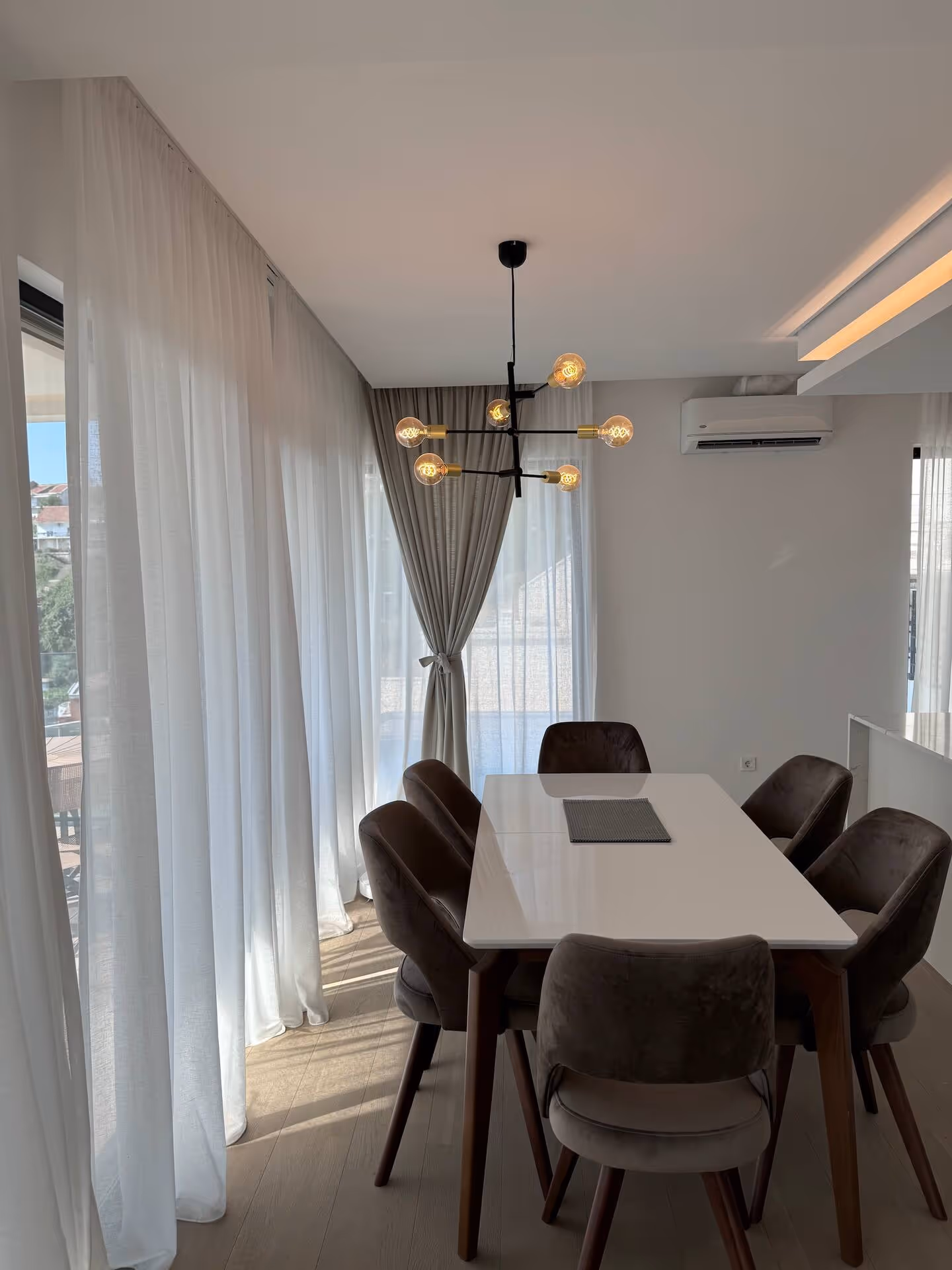 Prostrani dnevni boravak: Opustite se u svijetloj, otvorenoj dnevnoj sobi koja se neprimetno uliva u trpezariju. Uživajte u udobnom sedenju, TV-u sa ravnim ekranom i velikim prozorima koji preplavljuju prostor prirodnim svijetlom.
