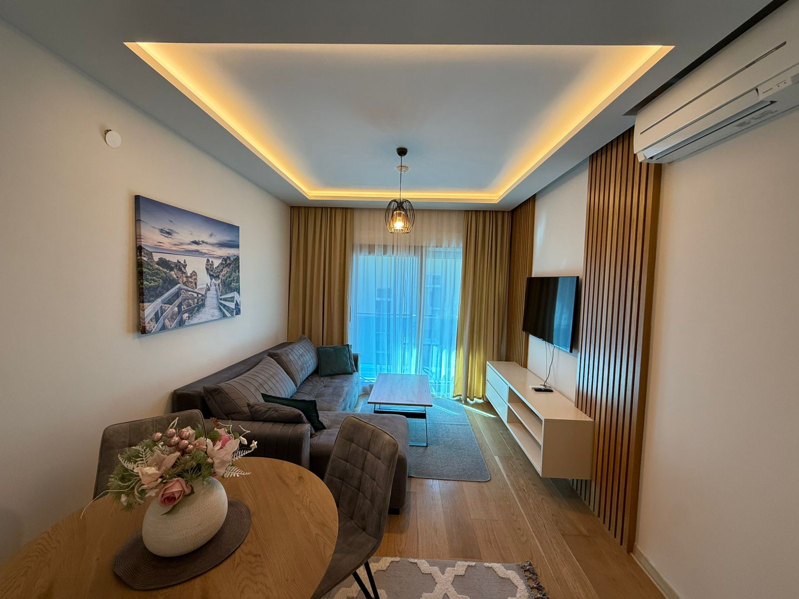 Ovaj stan se nalazi u Pržnu, opština Budva. More i plaža su udaljeni 200m od stana. Aerodrom Tivat je udaljen 27km, a aerodrom Podgorica 58km od stana.