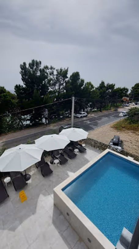 The hotel has 3 floors and 20 rooms with bathrooms, a restaurant with a professional kitchen with inner seating for 30 people and about 60 for outer seating (2 terraces), has an elevator on 6 floors, a pool, parking spots, laundry with professional machines, video surveillance and a solar heating system. It also has a pool. The hotel has a sea view.