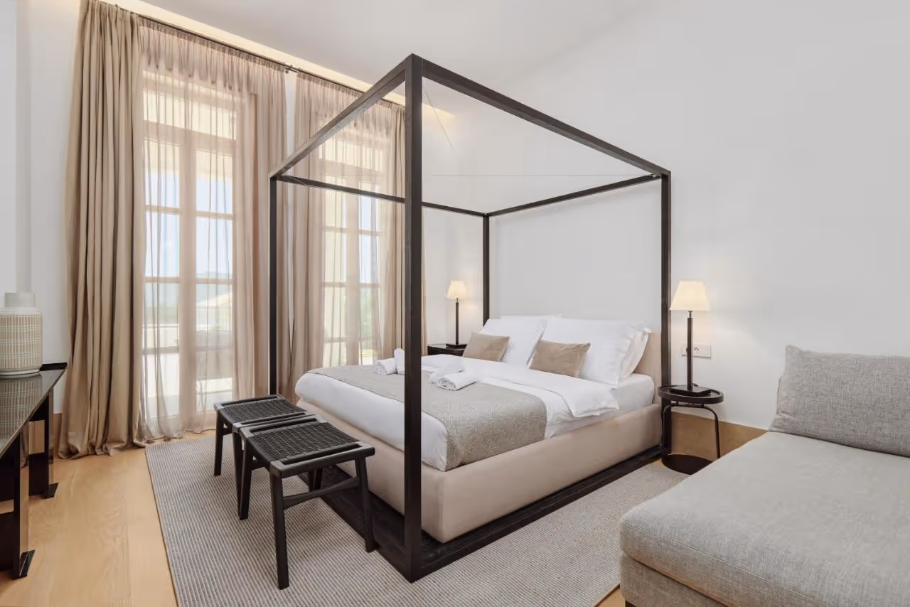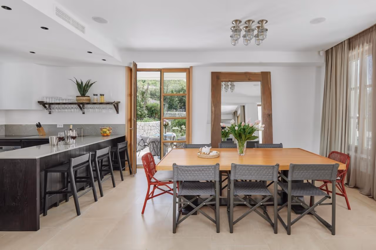 Ovo veličanstveno imanje sastoji se od 3 vile i prima 26 osoba. Svaka vila ima svoju terasu i bazen, hidromasažnu kadu, saunu i teretanu. Prelepo imanje je uvučeno u prirodu, sa prekrasnim pogledom na more i brda. Privatnost imanja je naglašena - ima privatni ulaz i parking za svaku vilu.