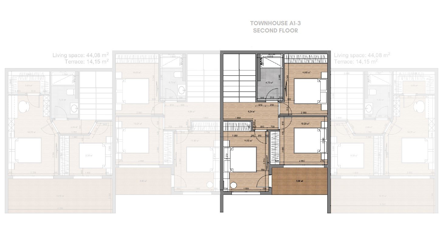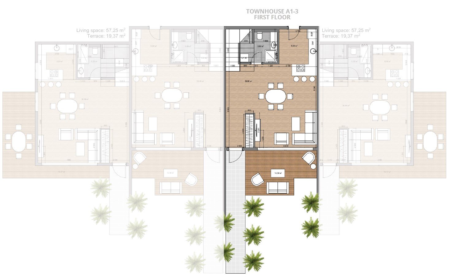 Kuća ima 134,85 m2 na zemljištu od 200m2, sastoji se od dnevnog boravka sa kuhinjom, 3 spavaće sobe, 2 kupatila, 2 terase i parkinga.