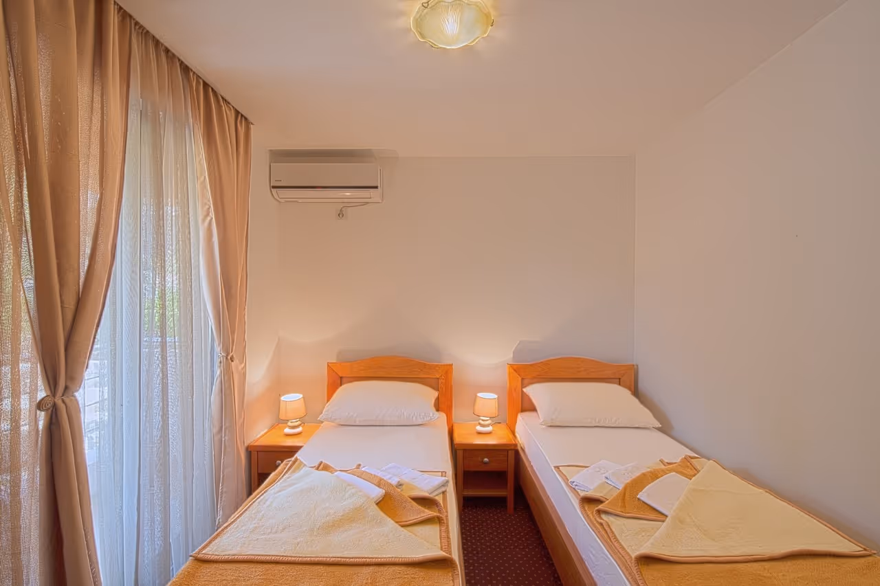 Mirna vila se nalazi na imanju od 1000m2. Stambena površina je 200m2 na dva sprata i idealna je za porodični odmor ili grupu prijatelja. Vila se sastoji od dnevnog boravka, trpezarije, kuhinje, četiri spavaće sobe, tri kupatila, dve terase i balkona. U prizemlju se nalazi veliki, otvorena dnevna soba/trpezarija/kuhinja, kroz hodnik je spavaća soba i jedno kupatilo. Na drugom spratu se nalaze dva kupatila, tri spavaće sobe, balkon i terasa sa pogledom na more i prirodu. Ispred kuće je besplatan parking sa 8 parking mesta. U dvorištu se nalazi prostrani privatni otvoreni roštilj sa baštenskom garniturom, privatni 40m2. bazen sa vodenom masažom.