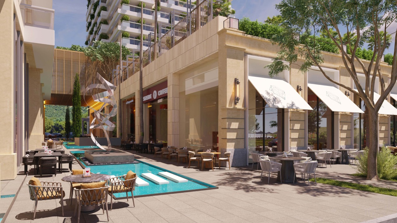 The project consists of 2 buildings. This building has 14 floors, while the apartment is on the 7th floor. The project will have: an infinity pool with a bar, rooftop bars, restaurants, a shopping mall with 27 stores, wellness center, a private beach, a beach bar/restaurant, multi purpose conference room, gym and fitness studios, 24 hour concierge and indoor parking. The project is connected by an asphalt road to the main road. There will be an option where the managing hotel could rent the apartment for the buyer. The project will be finished in 2027.