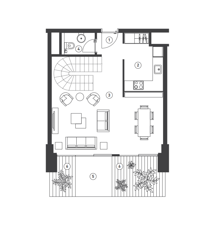 Structure of the apartment: hallway, living room with kitchen and dining table, 2 bedroom, 2 bathrooms, a toilet, a stairway and a terrace. It has a sea view. The apartment will be delivered fully furnished.