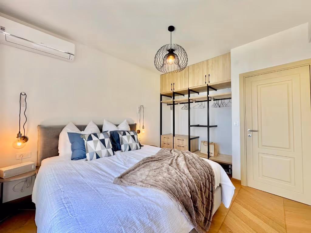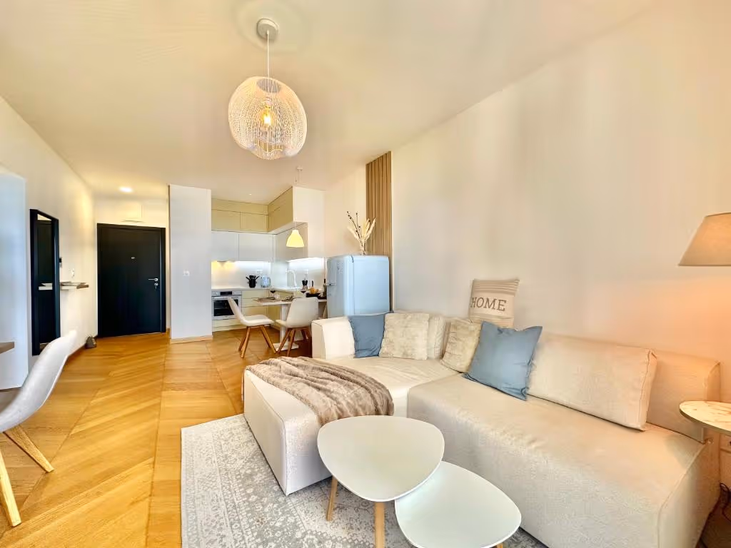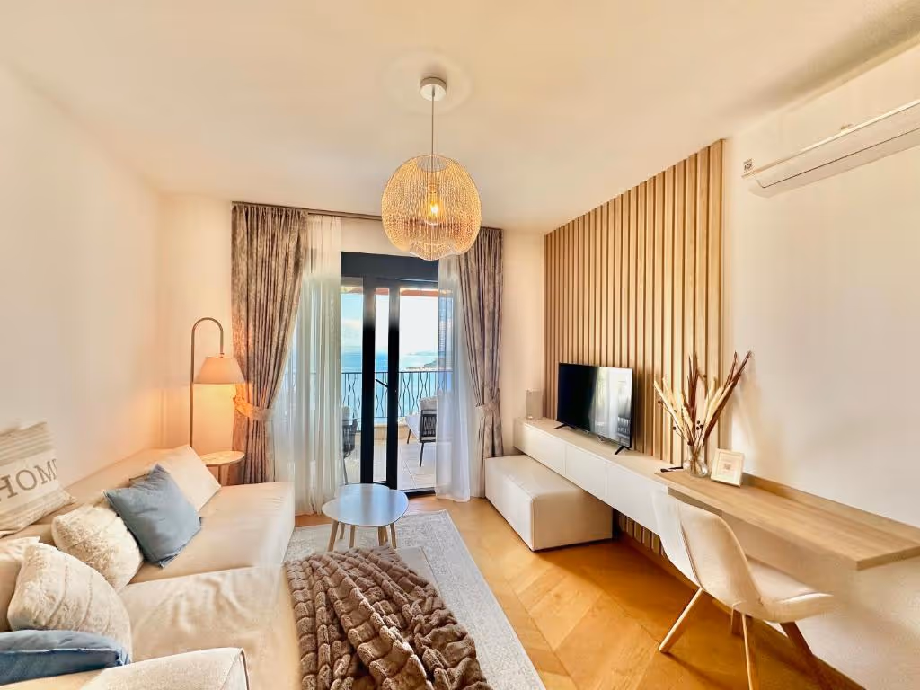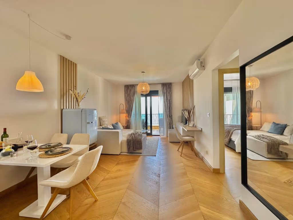This apartment is located in Sveti Stefan, Budva Municipality, 13km away from the city center. The sea and the beach are 3km away from the apartment. Tivat airport is 30km away and Podgorica airport is 55km away from the apartment. Peace and tranquility are guaranteed since the apartment is in the nature.
