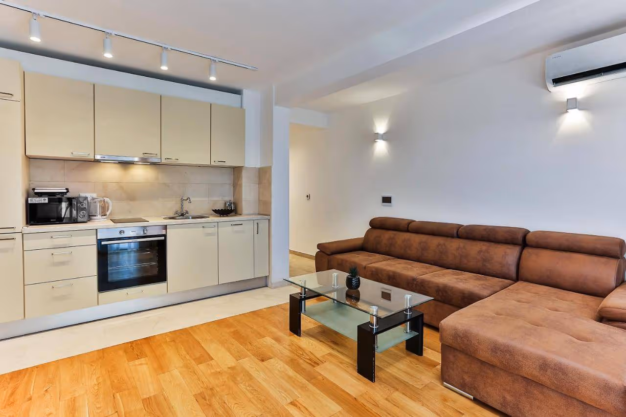 - dnevna soba sa kuhinjom i trpezarijskim stolom