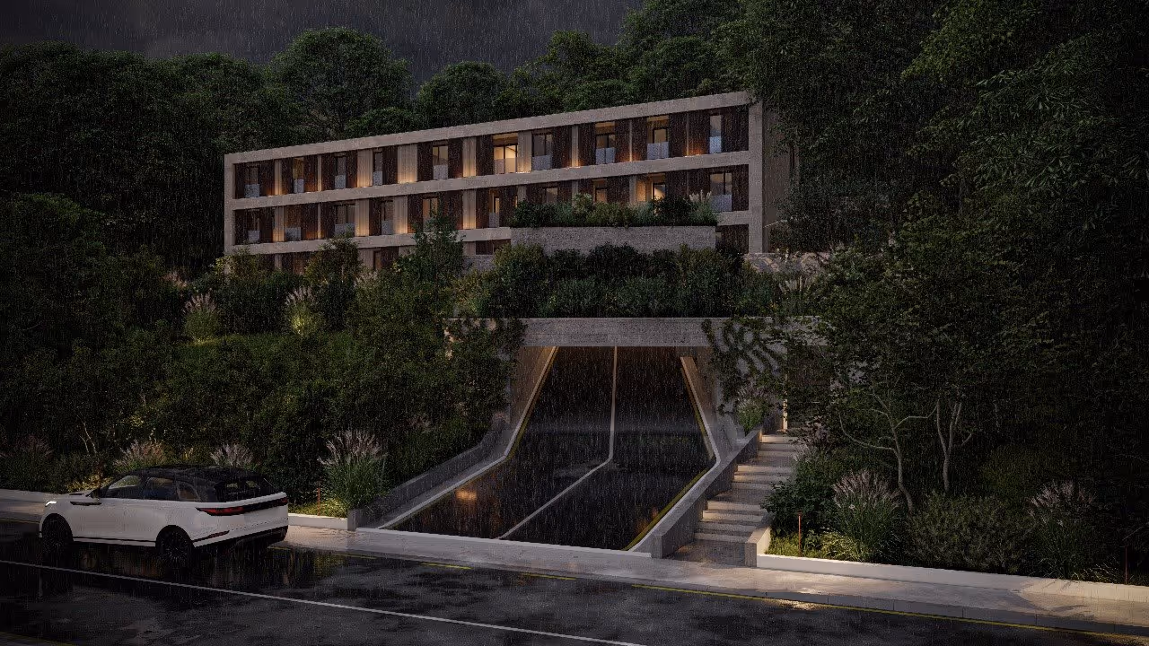 The building has 2 floors, while the apartment is on the 1st floor. This building has a private beach. It is connected to the main road by an asphalt road. The project will be finished by the end of 2026.