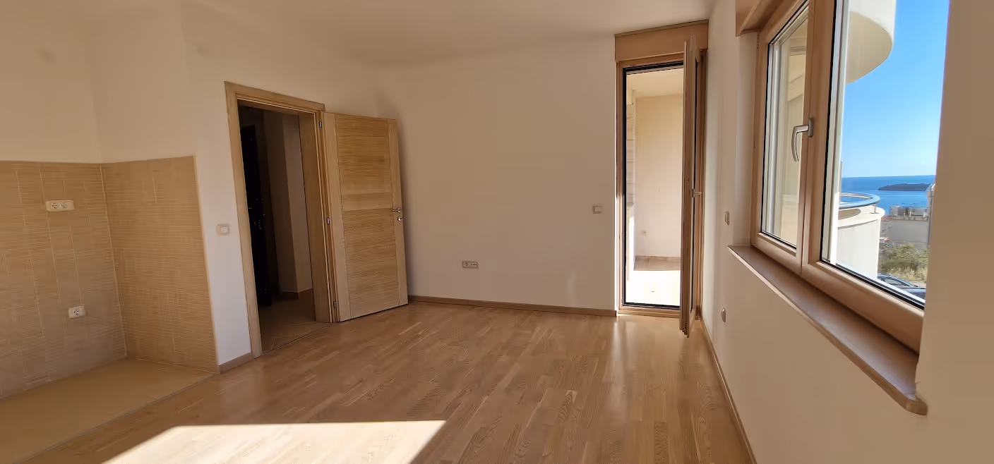 This apartment is located in Becici, municipality of Budva. Tivat airport is 22km away and Podgorica airport is 61km away form the apartment. The apartment has a view of the sea and the mountains that surround it. The beach and sea are 500m away from the apartment. It is located on the first floor of the building.