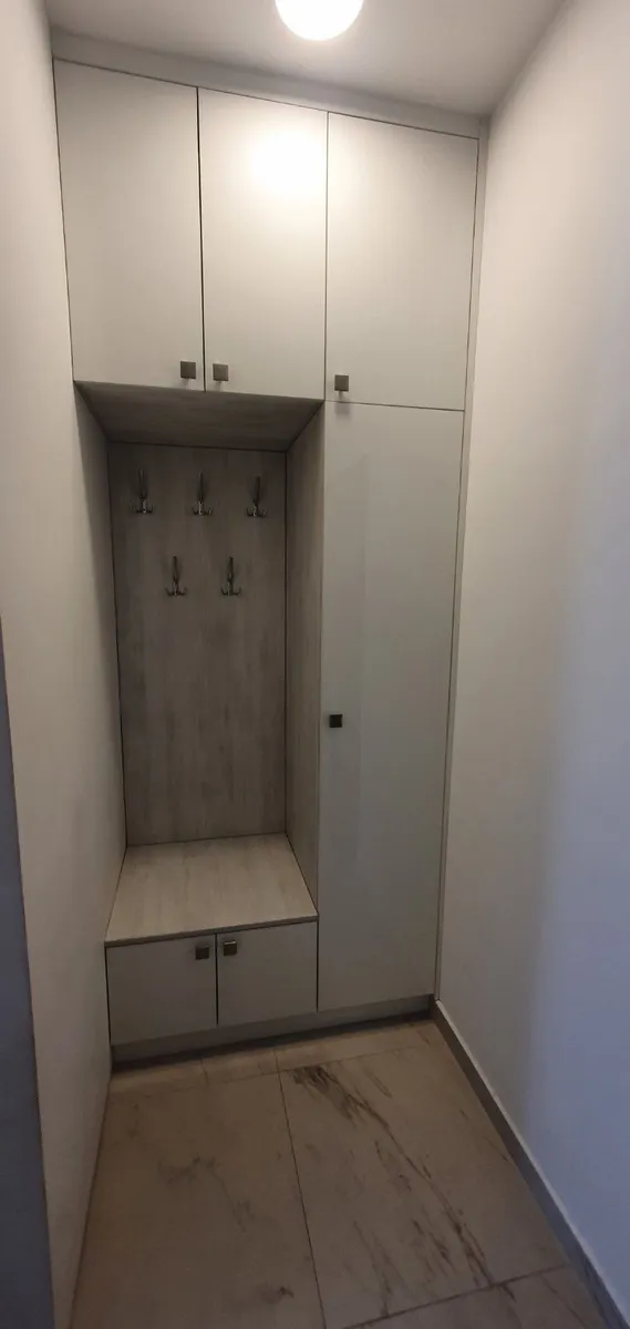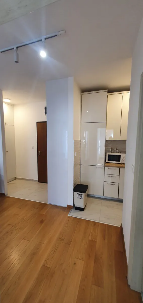 Struktura stana: dnevna soba sa kuhinjom i trpezarijskim stolom, spavaća soba, kupatilo i terasa.