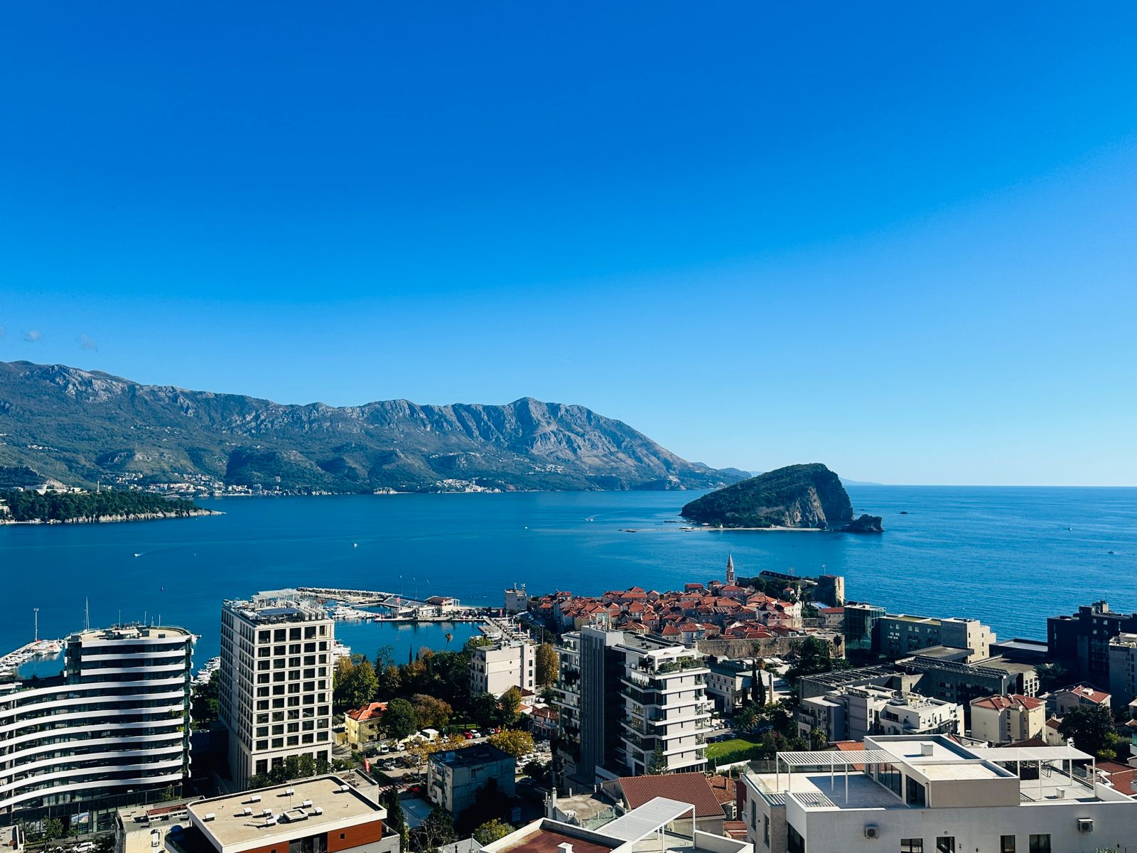Ovaj stan se nalazi u Budvi, 300 metara od centra grada. More i plaža su udaljeni 800 metara od stana. Aerodrom Tivat je udaljen 20 km, a aerodrom Podgorica 61 km od stana. Međunarodna škola se nalazi odmah pored zgrade. Razni restorani i prodavnice prehrambenih proizvoda nalaze se u neposrednoj blizini stana.