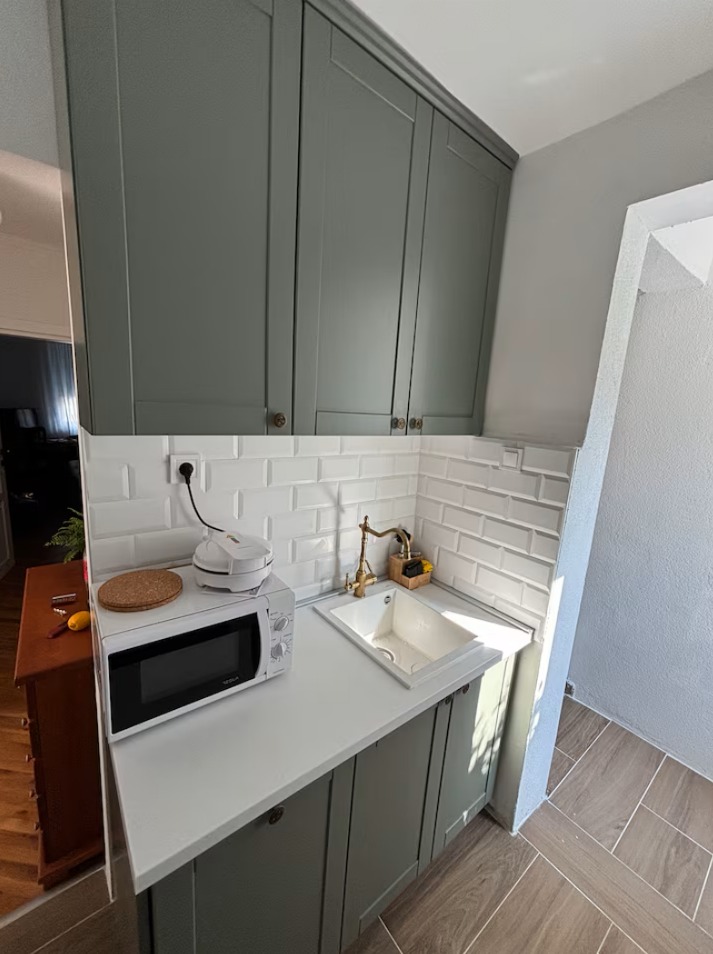 Struktura stana: hodnik, dnevna soba sa kuhinjom i trpezarijskim stolom, spavaća soba, kupatilo i terasa.