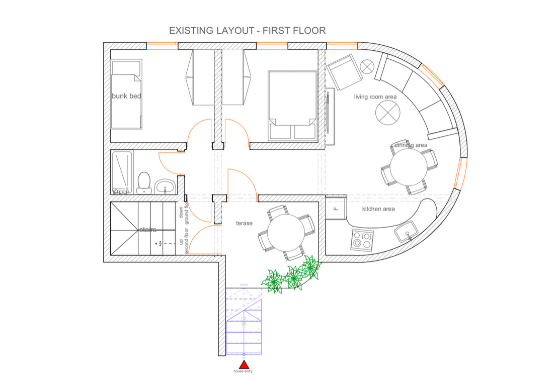 The house has 3 levels and on each one is an apartment of 50m2. The entrance of the house is from the 1st floor. The façade of the house is made out of stone. There are 2 parking spots in front of the house. It is connected by an asphalt road to the main road.