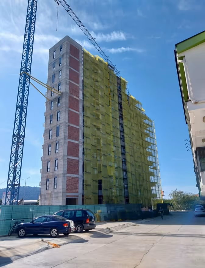 Zgrada ima 10 spratova, dok se stan nalazi na 8. spratu. Povezana je sa glavnim putem asfaltnim putem. Javni parking je dostupan ispred zgrade i u komšiluku.